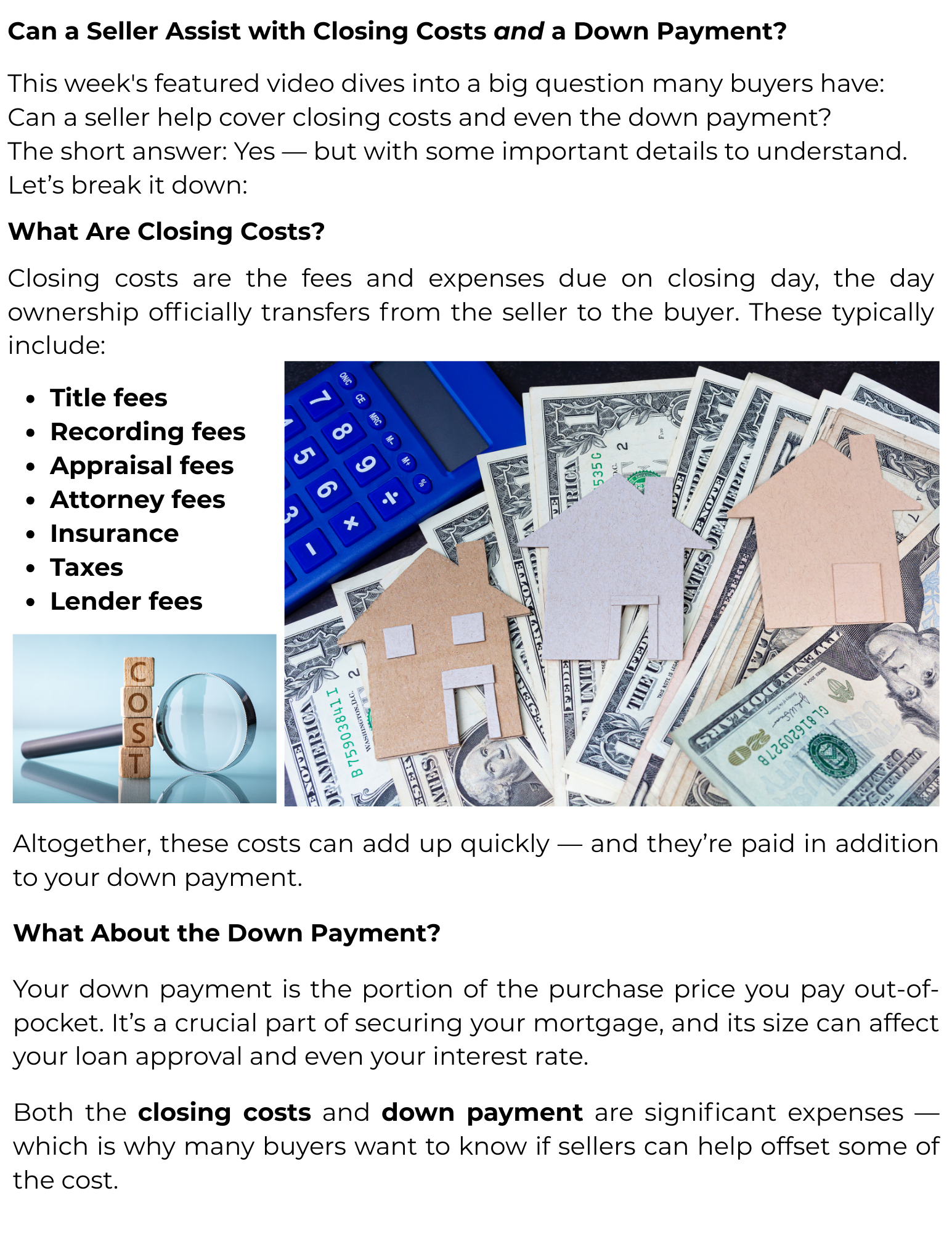 Can a Seller Assist with Closing Costs and a Down Payment?