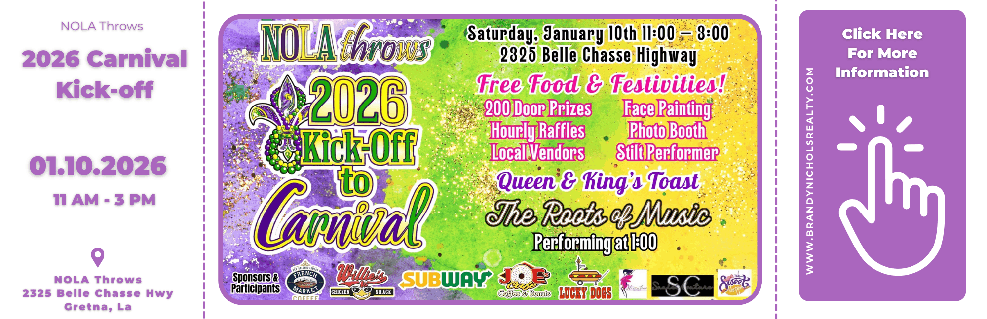 Welcome to your St. Charles Parish Weekend Events Guide — the Brandy Nichols Realty Weekender! Each week we round up the best events happening Friday through Sunday in and around St. Charles Parish so you can easily plan the perfect weekend. Whether you're looking for holiday festivities, family fun, local markets, motorsports, pet experiences, or tasty eats and games — we’ve got you covered!