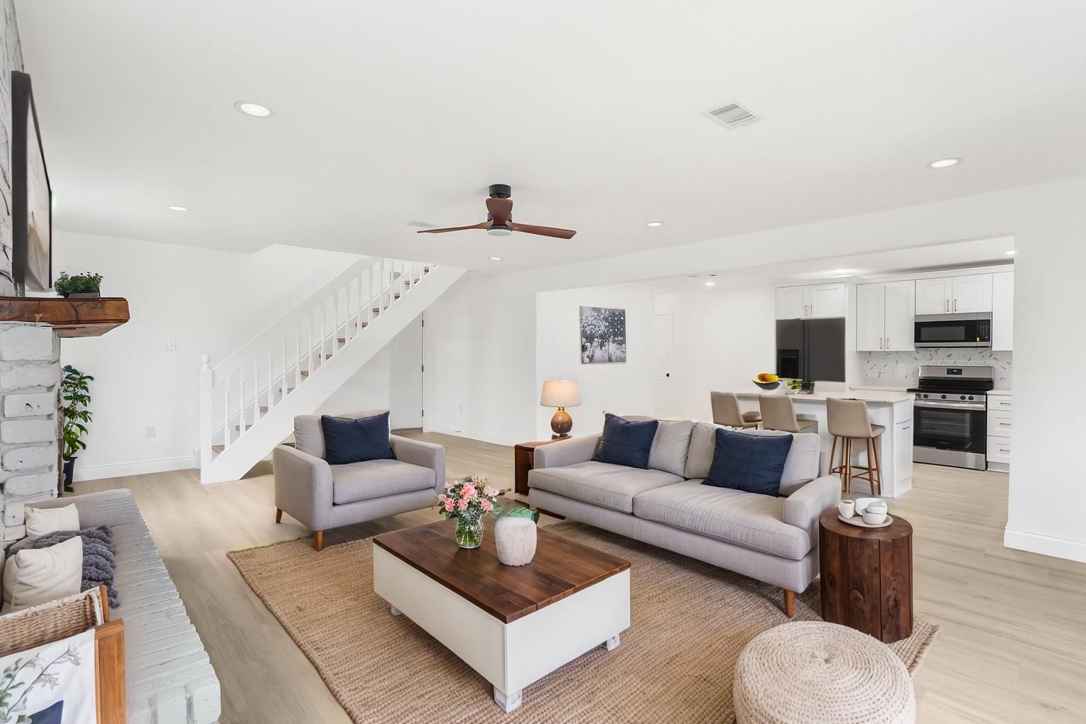 Step inside to discover an open, inviting layout designed for both function and flow. The kitchen features updated cabinetry, sleek countertops, and an open-concept design that connects seamlessly to the dining and living areas. Whether hosting family gatherings or enjoying quiet evenings at home, this layout makes everyday living effortless.
